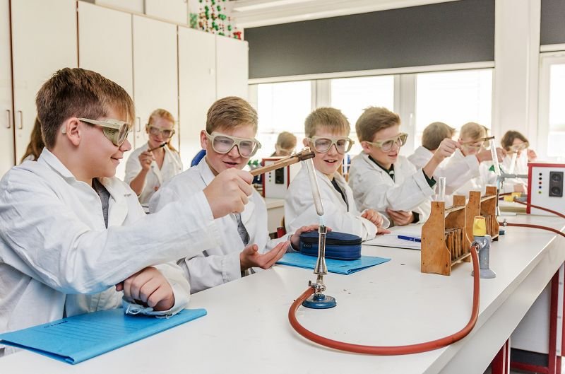 Chemie beginnt in der Klasse 7. Die modernen Chemieräume sind sehr gut ausgestattet und ermöglichen einen modernen, experimentellen Unterricht.